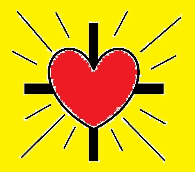 Dieses farbige und das schwarzweiße Symbol und Version von einem Kreuz, mit Herz und Licht, ist eine Schöpfung von mir. Es stellt die Trinität dar, Vater Gott als die Liebe bzw. liebende Herz, die Kraft von Jesus Christus als das gleichschenkeligen heilenden Kreuz und den Heiligen Geist als das allgegenwärtige Licht der Wahrheit. Inspiriert wurde ich durch meine Begegnung mit Gott und dem danach folgenden erforschen, was Gott für mich ist und wie er an mir wirkt.